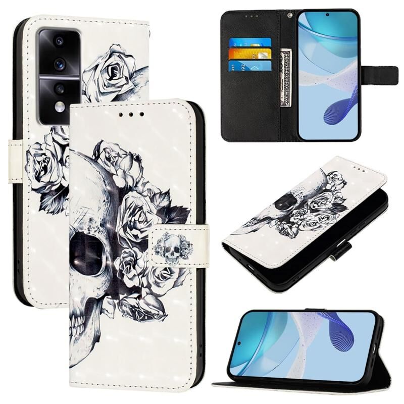 Θήκη τηλεφώνου από δέρμα με οριζόντια αναδίπλωση και τρισδιάστατη βαφή για Honor 80 GT (Κρανίο)