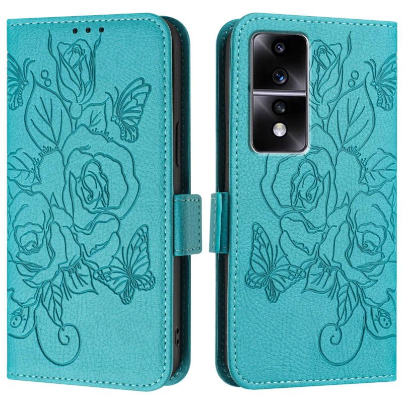 For Honor 80 GT 5G Embossed Rose RFID Anti-theft Leather Phone Case(Light Blue)