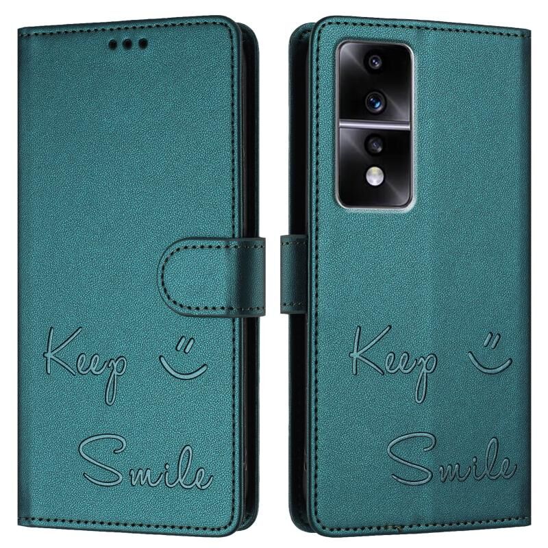 Θήκη τηλεφώνου από δέρμα με τεχνολογία RFID και ανάγλυφο χαμόγελο για Honor 80 GT 5G (Μέντας Πράσινο)