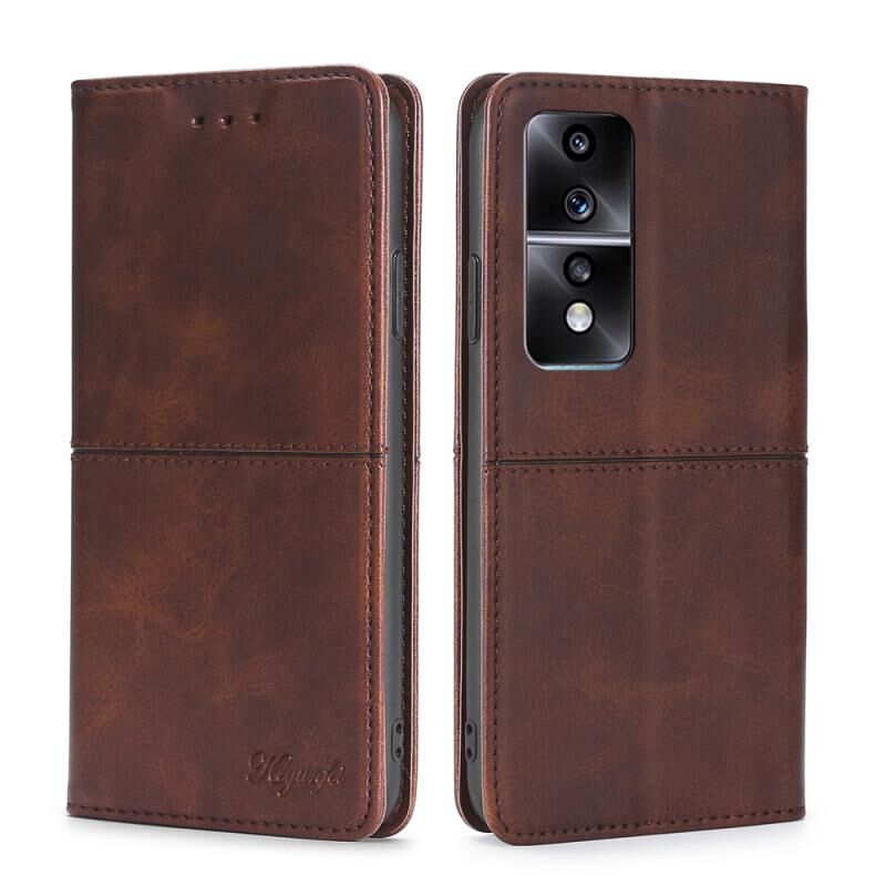 Για Honor 80 GT Αγελάδα υφή μαγνητική οριζόντια Flip δέρμα τηλέφωνο υπόθεση (σκούρο καφέ)