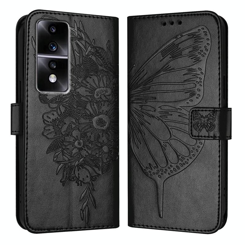 Για Honor 80 GT ανάγλυφη πεταλούδα δερμάτινη θήκη τηλεφώνου (μαύρο)