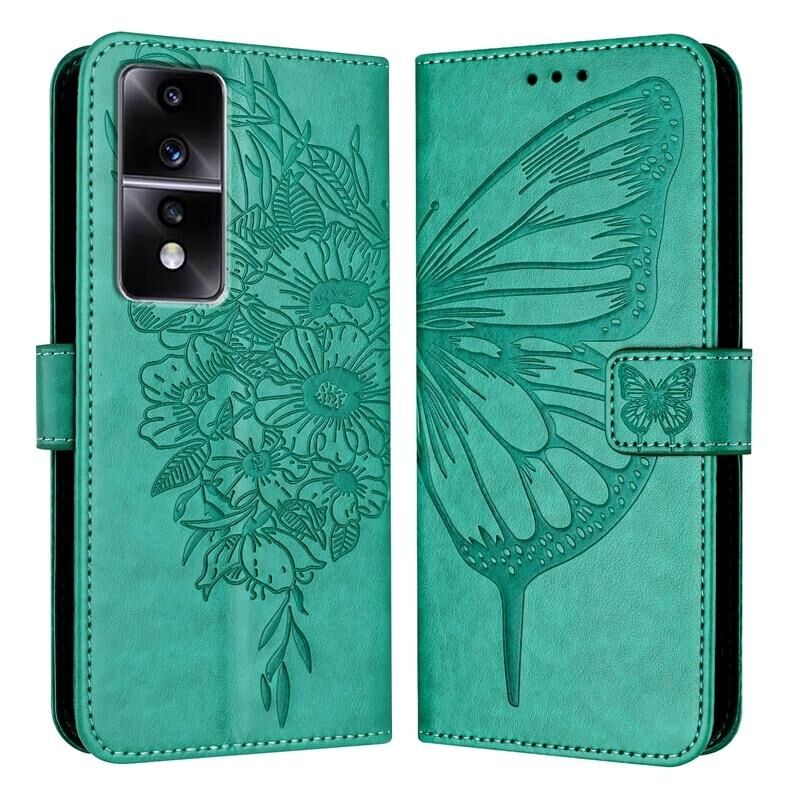 Για Honor 80 GT ανάγλυφη πεταλούδα δερμάτινη θήκη τηλεφώνου (πράσινο)