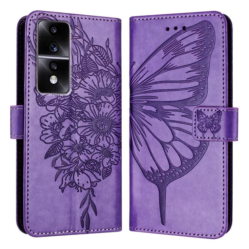 Για Honor 80 GT ανάγλυφη πεταλούδα δερμάτινη θήκη τηλεφώνου (μωβ)