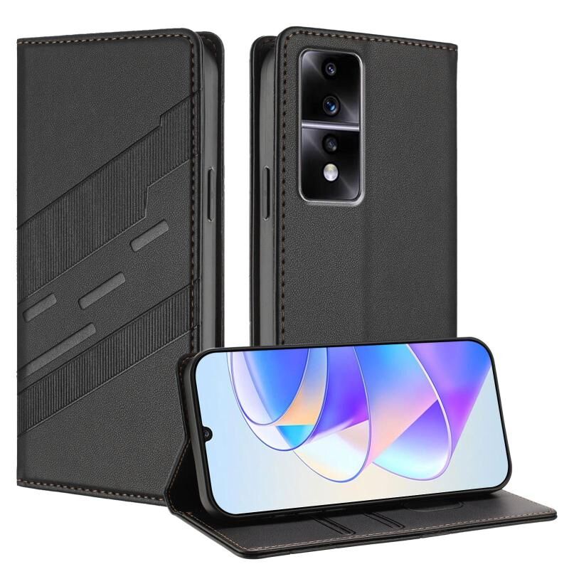 Θήκη τηλεφώνου από δέρμα retro, πολυλειτουργικό πορτοφόλι με ανάγλυφο σχέδιο για Honor 80 GT (Μαύρο)