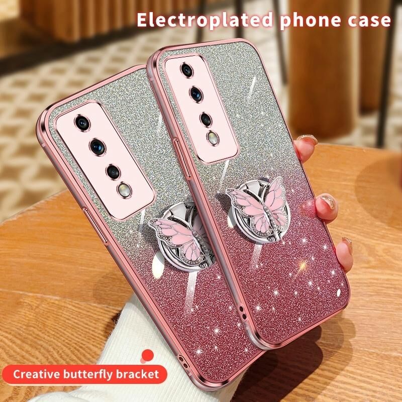 Θήκη κινητού τηλεφώνου TPU με επιμετάλλωση, διαβαθμισμένη λάμψη, πεταλούδα για Honor 80 GT (Ροζ)