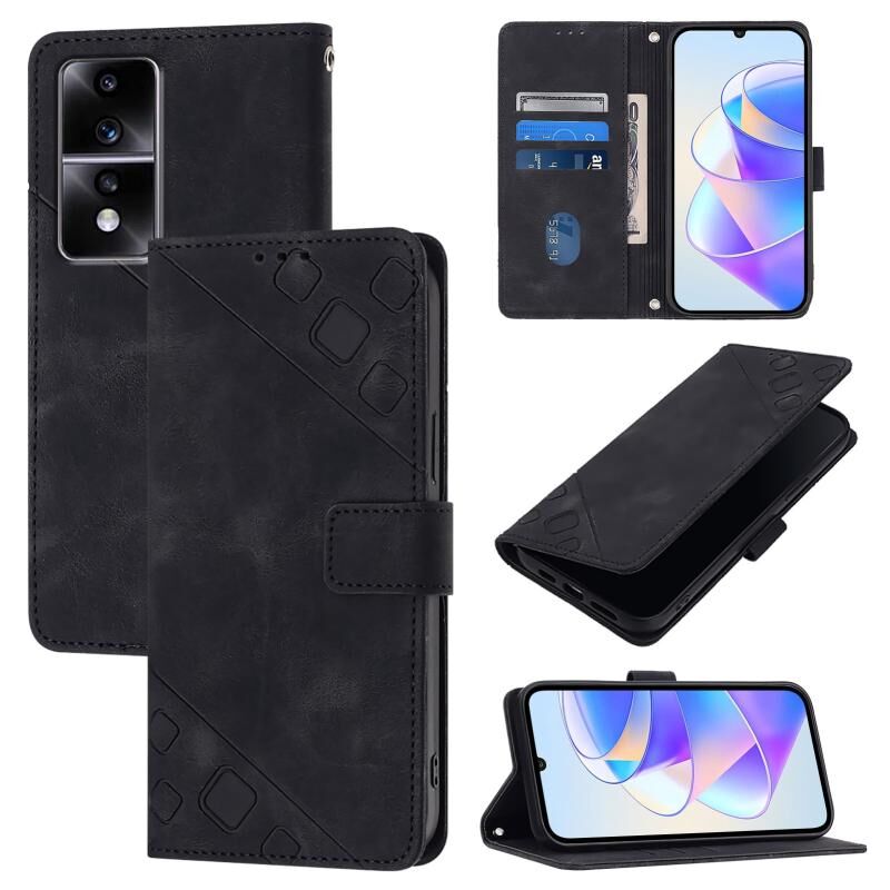 Θήκη τηλεφώνου από δέρμα με ανάγλυφη υφή για Honor 80 GT (Ανοιχτό Μωβ)