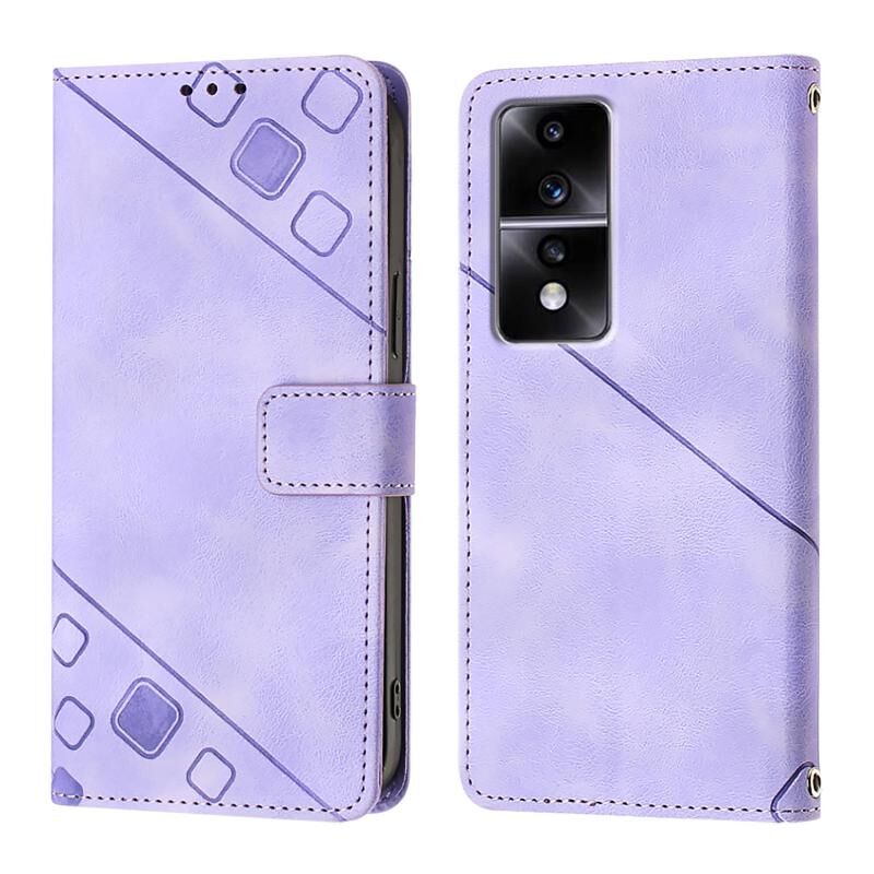 Θήκη τηλεφώνου από δέρμα με ανάγλυφη υφή για Honor 80 GT (Ανοιχτό Μωβ)