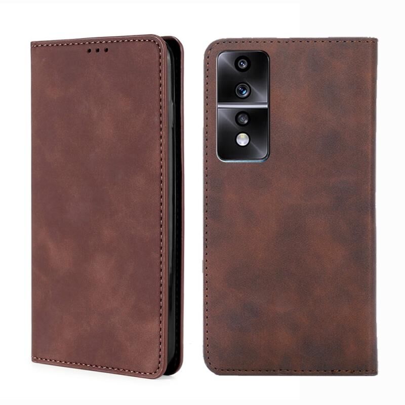 Για Honor 80 GT Skin Feel μαγνητική οριζόντια Flip δέρμα τηλέφωνο υπόθεση (σκούρο καφέ)
