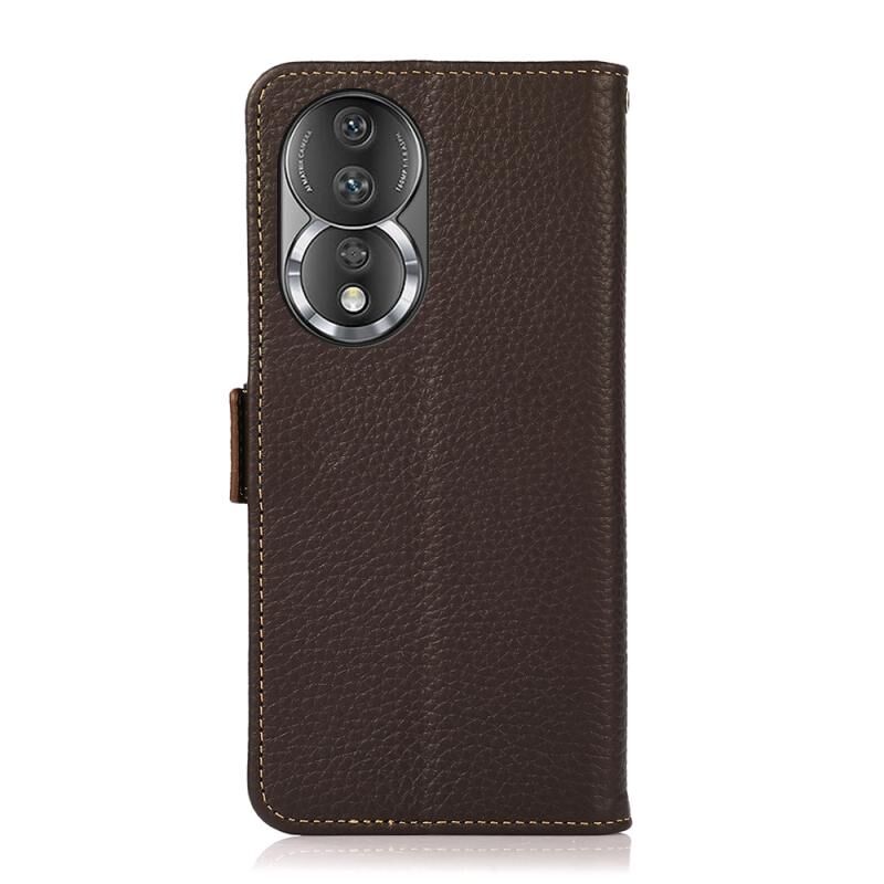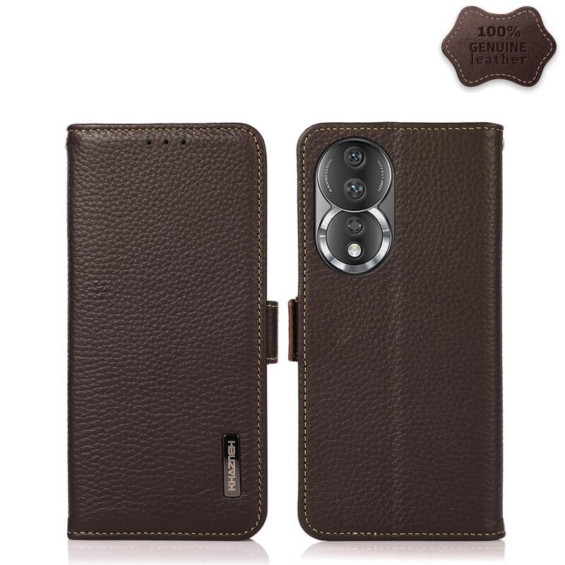 Θήκη κινητού τηλεφώνου Honor 80 KHAZNEH με μαγνητική πλευρά, γνήσιο δέρμα Litchi, RFID (Καφέ)