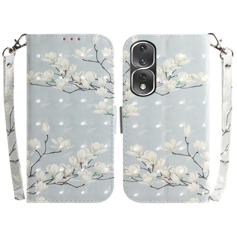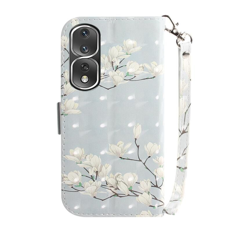Θήκη τηλεφώνου δερμάτινη, οριζόντια, αναδιπλούμενη, με έγχρωμο 3D σχέδιο για Honor 80 Pro (Μαγνολία)