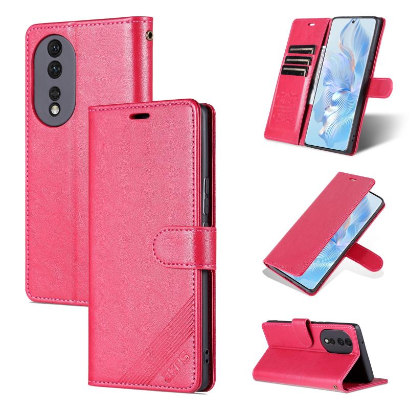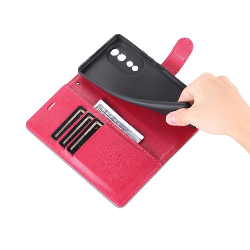 Θήκη τηλεφώνου δερμάτινη αναδιπλούμενη με υφή δέρματος προβάτου για Honor 80 Pro AZNS (Μαύρο) (Κόκκινο)