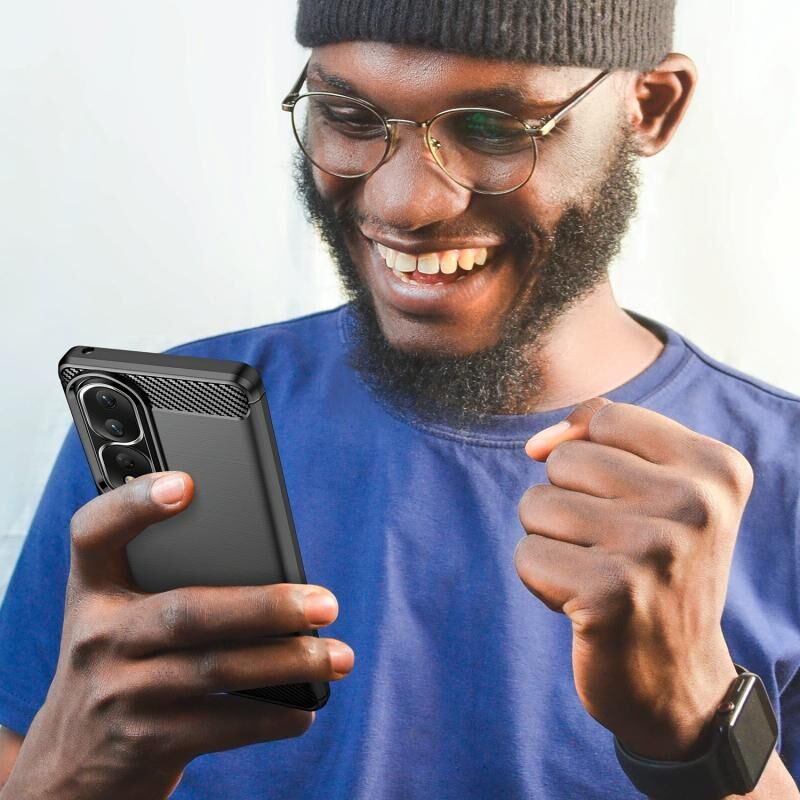 Για Honor 80 Pro βουρτσισμένη υφή Carbon Fiber TPU τηλέφωνο υπόθεση (μαύρο)