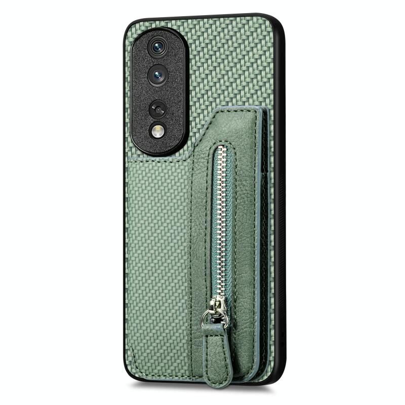Για Honor 80 Pro Carbon Fiber Οριζόντια Flip φερμουάρ πορτοφόλι υπόθεση τηλέφωνο (Πράσινο)