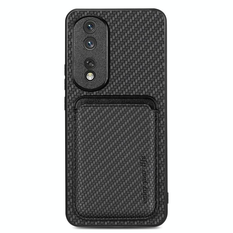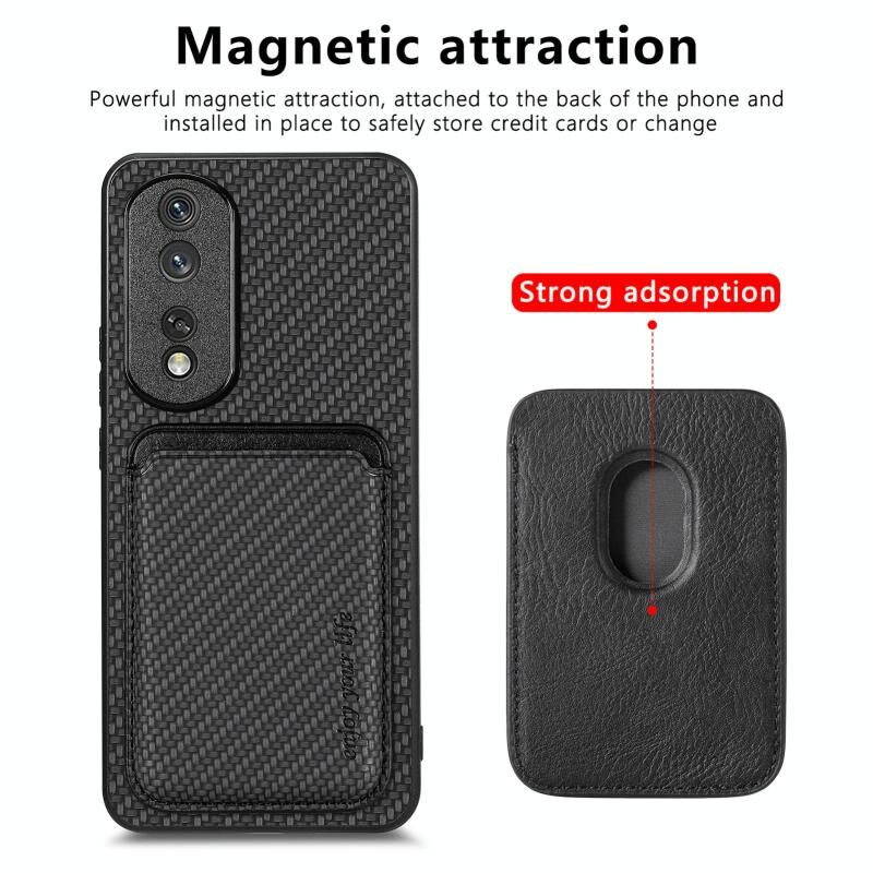 Θήκη τηλεφώνου Honor 80 Pro από ανθρακονήματα και δέρμα με κάρτες και MagSafe (Μαύρο)