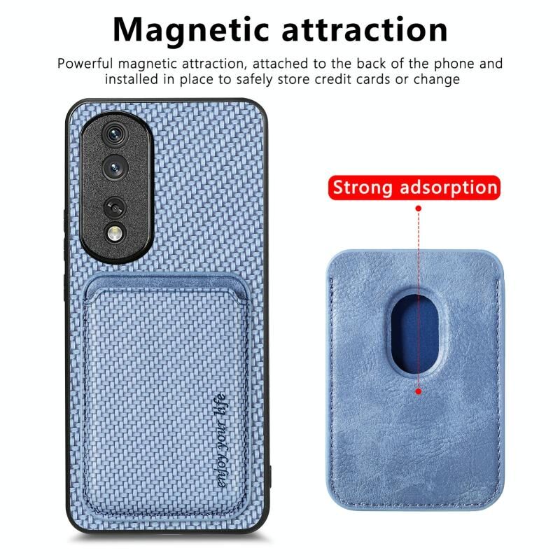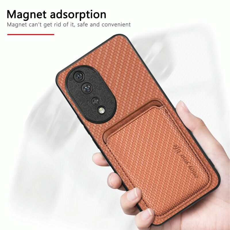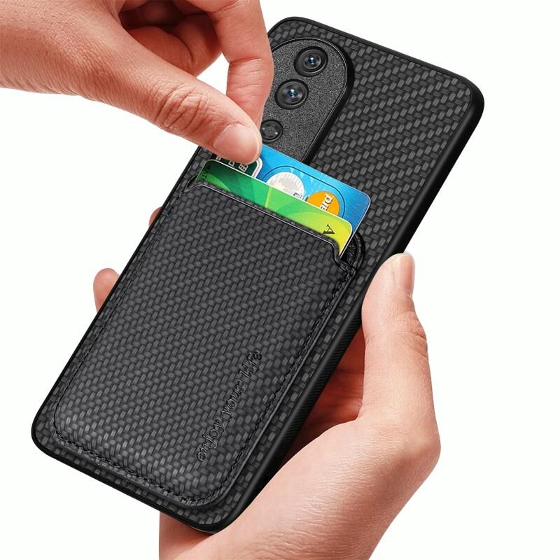Θήκη τηλεφώνου Honor 80 Pro από ανθρακονήματα και δέρμα με κάρτες και MagSafe (Μαύρο)