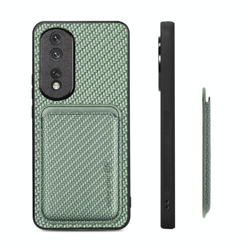 Θήκη τηλεφώνου Honor 80 Pro από ανθρακονήματα και δέρμα με κάρτες και MagSafe (πράσινο)