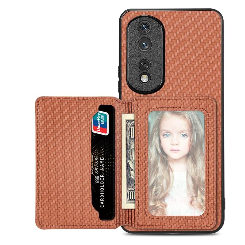 Για Honor 80 Pro Carbon Fiber μαγνητική κάρτα τσάντα υπόθεση τηλεφώνου (Καφέ)