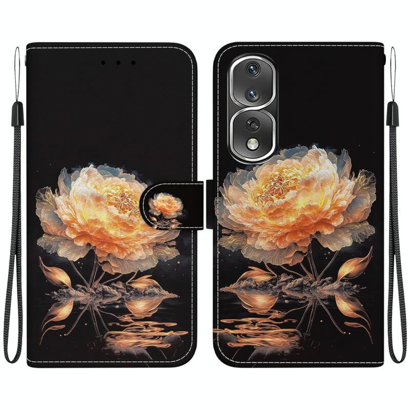 Θήκη τηλεφώνου από δέρμα με σχέδιο και χρώμα κρυστάλλινης υφής για Honor 80 Pro (Μωβ Παιώνια)