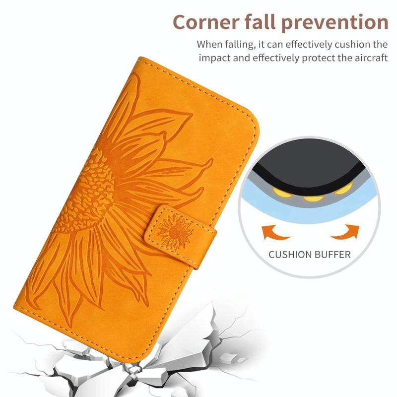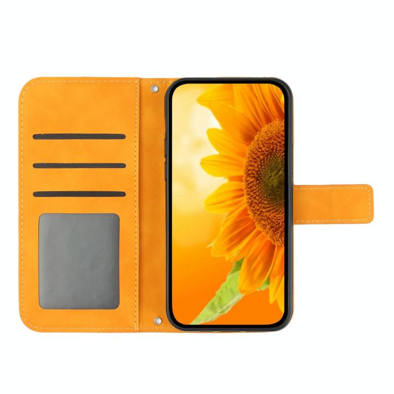 Θήκη τηλεφώνου από δέρμα με ανάγλυφο ηλιοτρόπιο και λουρί για Honor 80 Pro HT04, με αίσθηση δέρματος (Κίτρινο)