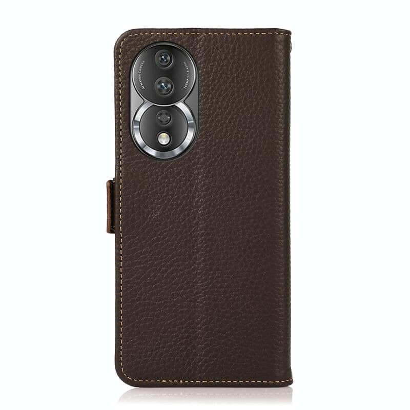 Θήκη κινητού τηλεφώνου με μαγνητική πλευρά και γνήσιο δέρμα Litchi RFID για Honor 80 Pro KHAZNEH (Καφέ)