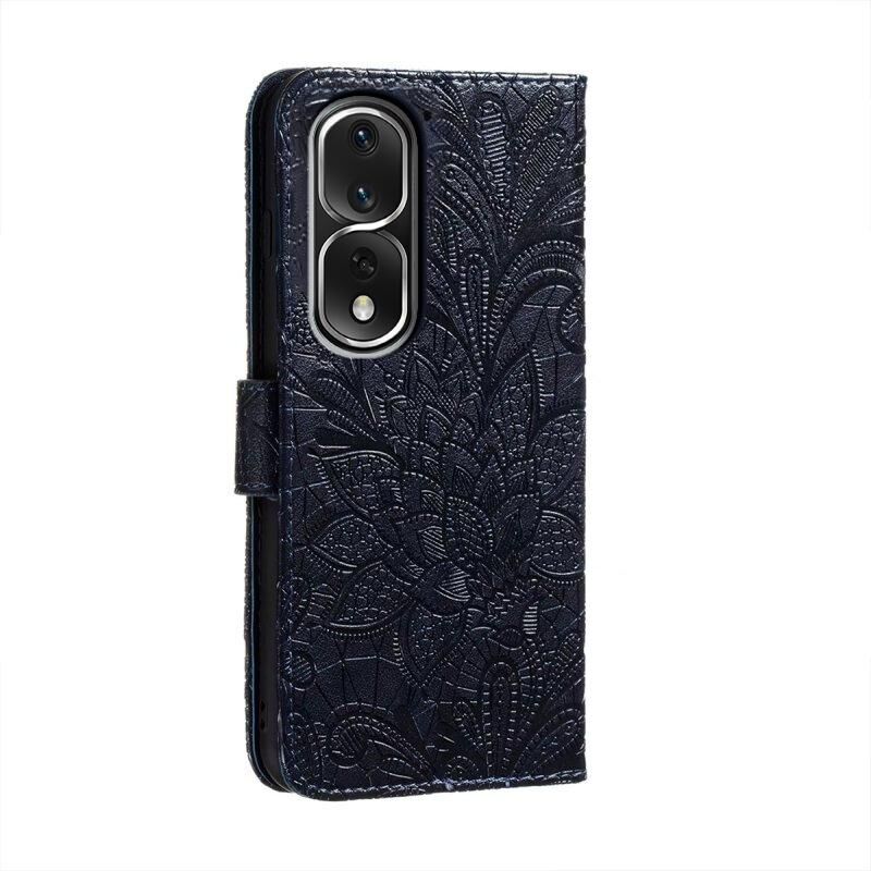 For Honor 80 Pro Lace Flower Embossing Flip Leather Phone Case(Dark Blue)