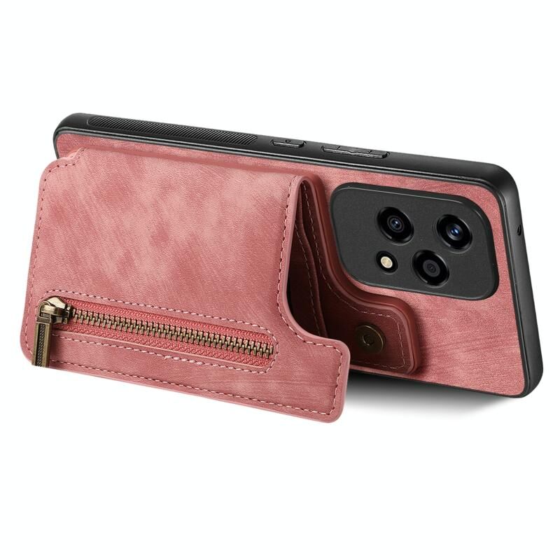 Για Honor 80 Pro Ρετρό δέρμα φερμουάρ πορτοφόλι πίσω υπόθεση τηλεφώνου (ροζ)