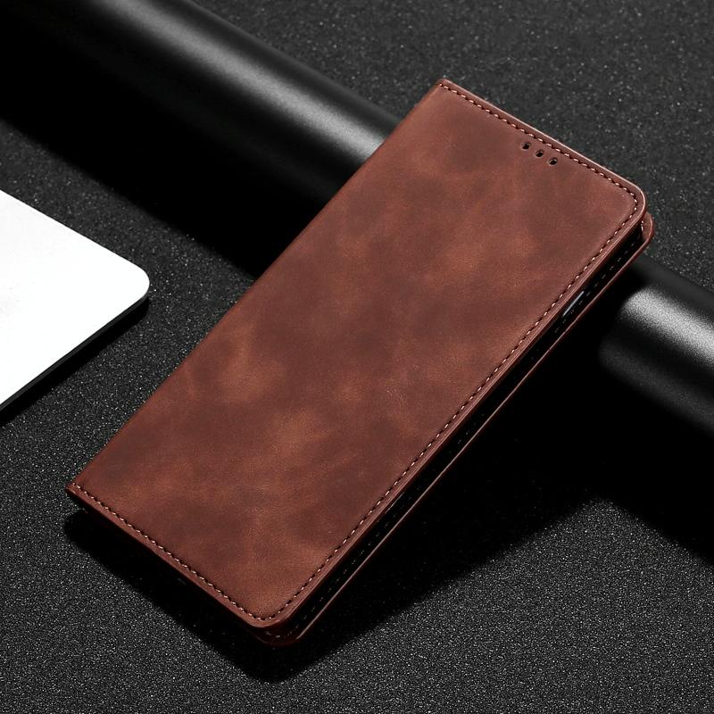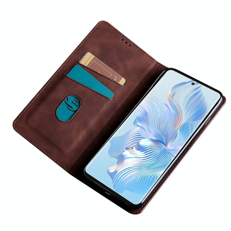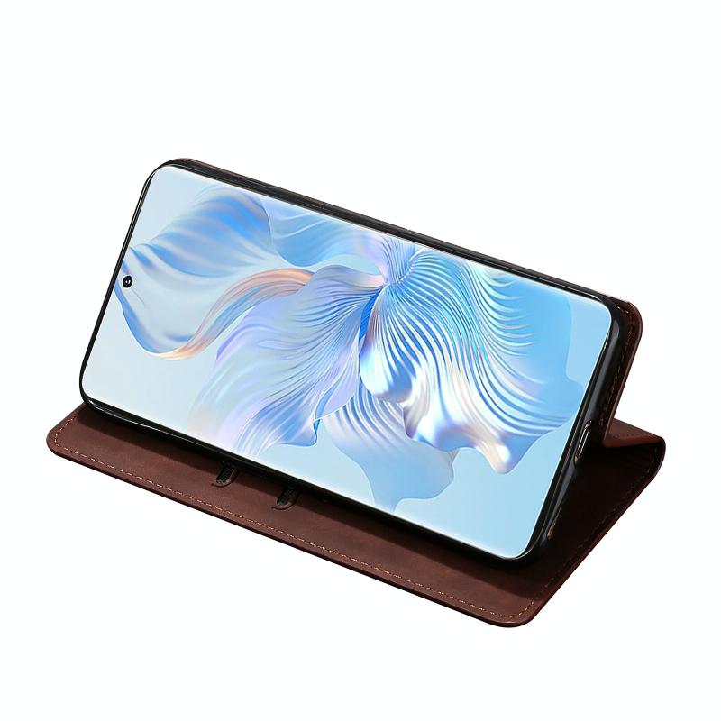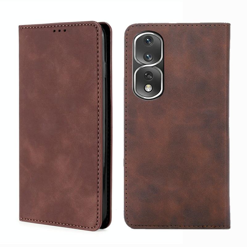 Θήκη τηλεφώνου δερμάτινη, οριζόντια, μαγνητική, τύπου flip για Honor 80 Pro με αίσθηση δέρματος (Σκούρο καφέ)