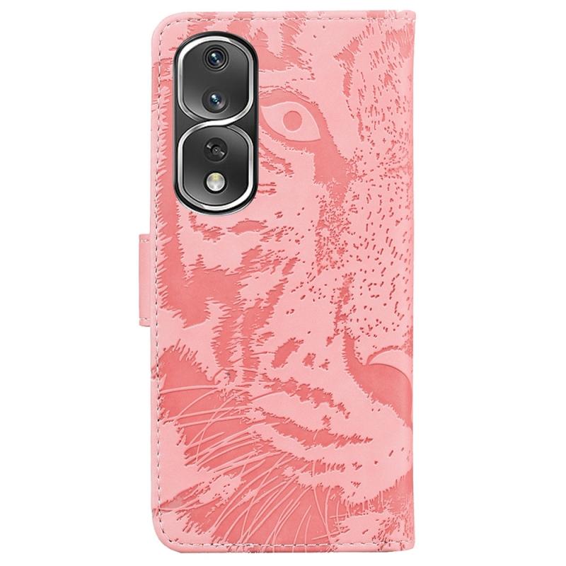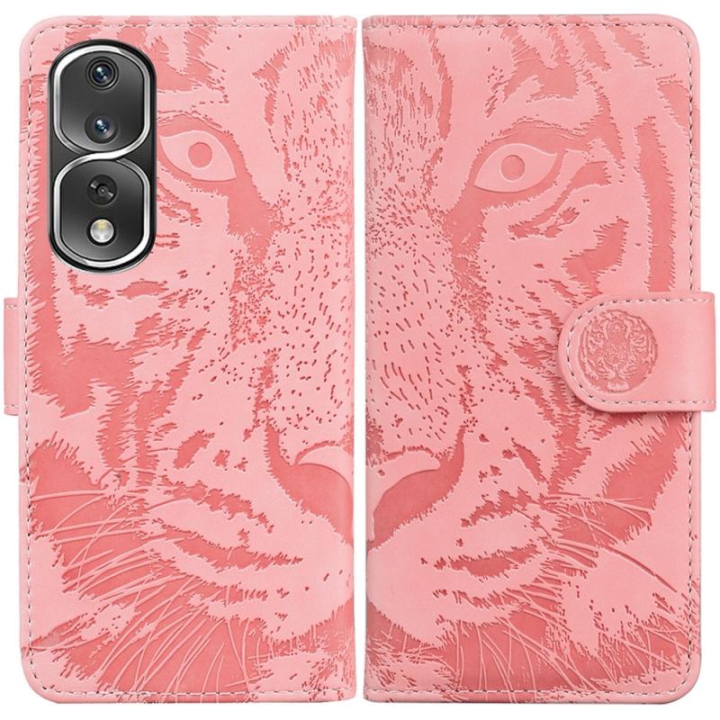 Θήκη τηλεφώνου από δέρμα με ανάγλυφο μοτίβο τίγρης για Honor 80 Pro (ρόζ)