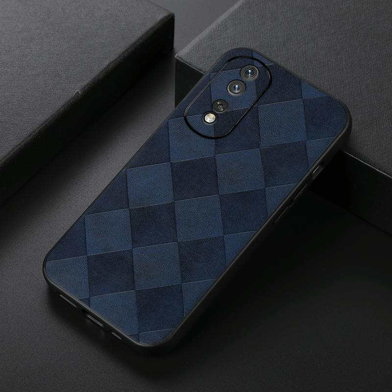 Θήκη τηλεφώνου για Honor 80 Pro με υφή καρό PU (Μπλε)