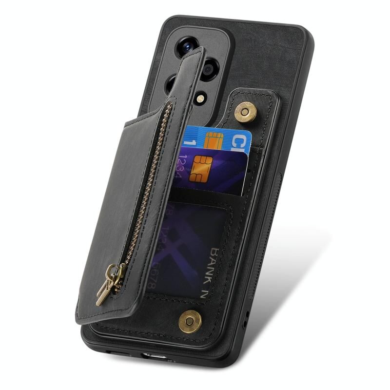 Για Honor 80 Ρετρό δέρμα φερμουάρ πορτοφόλι πίσω τηλέφωνο υπόθεση (μαύρο)
