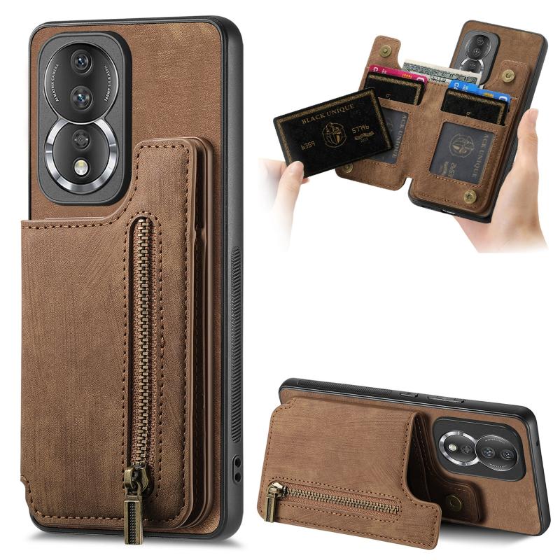 Θήκη Honor 80 Δερμάτινη με Φερμουάρ και Θήκη Κάρτας (Καφέ)