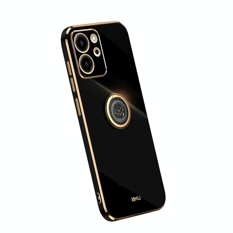 Θήκη τηλεφώνου XINLI για Honor 80 SE 5G, ευθεία άκρη, ηλεκτρολυτική επίστρωση TPU με δακτύλιο (Κόκκινο Hawthorn) (Μαύρο)