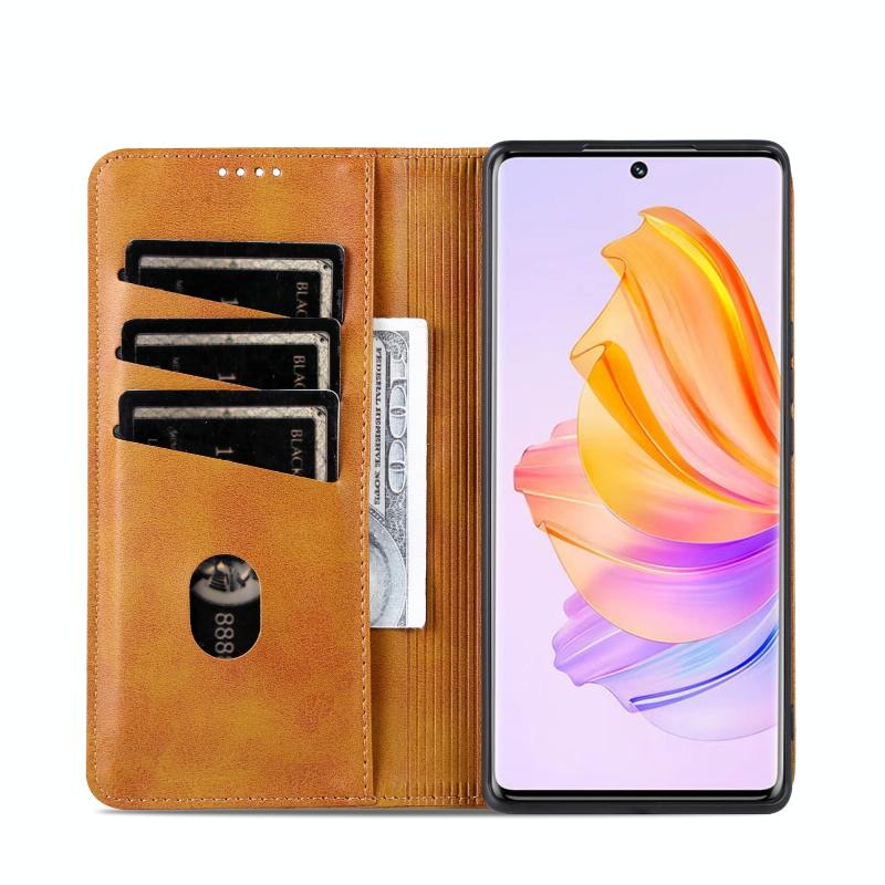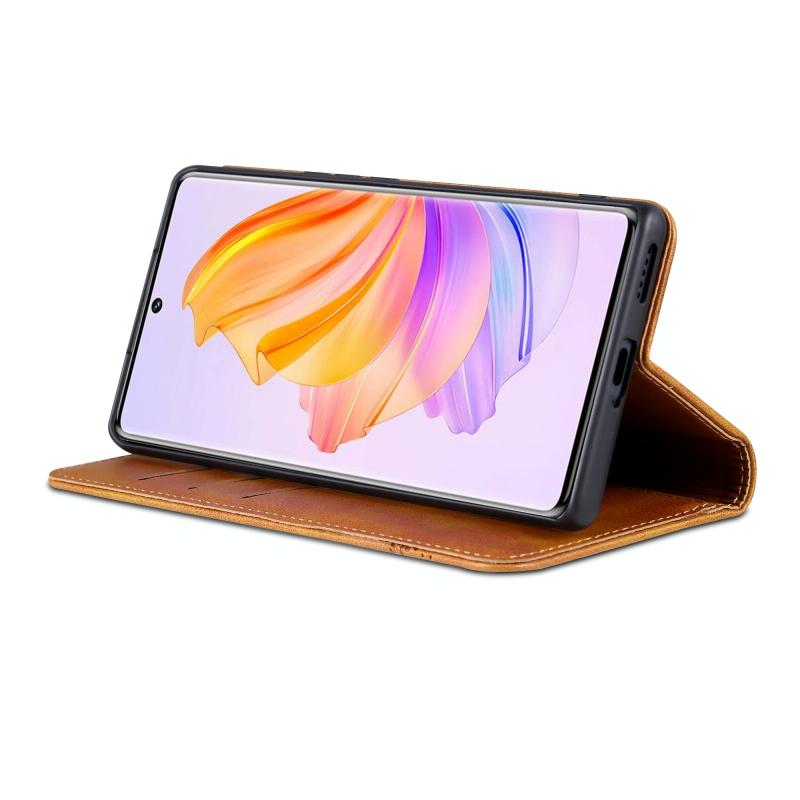 Θήκη τηλεφώνου από δέρμα με μαγνητική υφή μοσχαριού για Honor 80 SE AZNS (Σκούρο Καφέ) (Ανοιχτό καφέ)