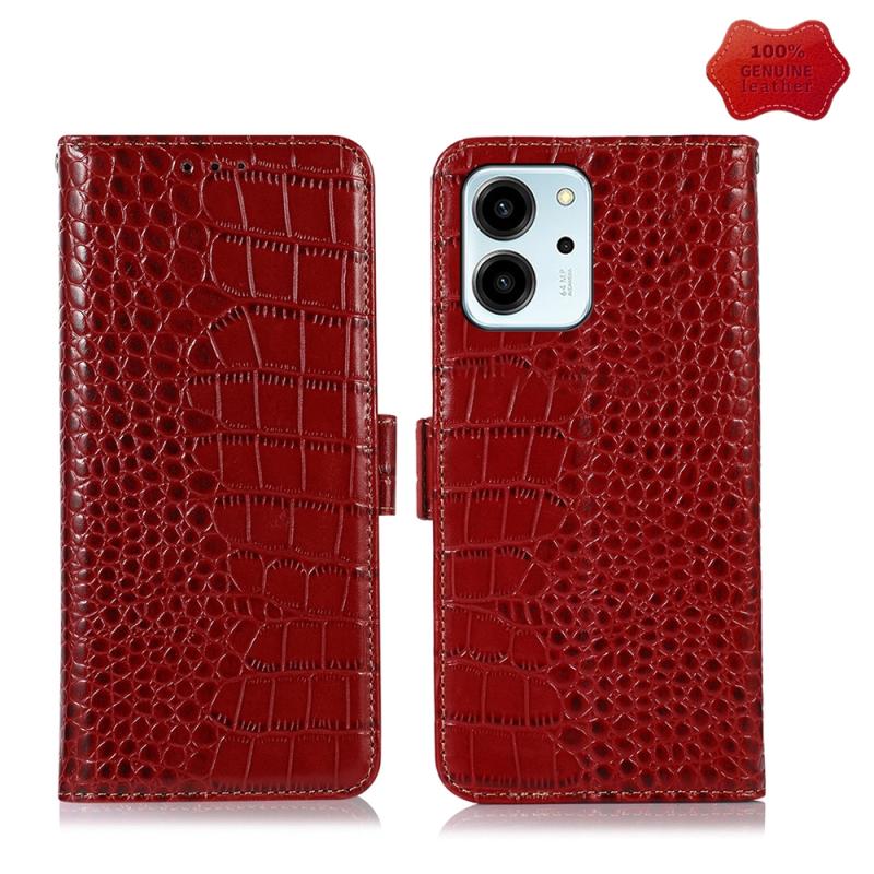 Θήκη τηλεφώνου από γνήσιο δέρμα αγελάδας Crocodile Top Layer για Honor 80 SE (Κόκκινο)