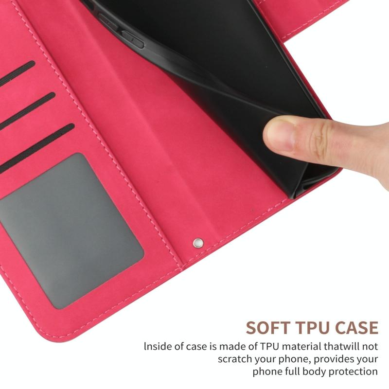 Θήκη τηλεφώνου από δέρμα με ανάγλυφο ηλιοτρόπιο και λουρί για Honor 80 SE HT04, με αίσθηση αφής (Ροζέ κόκκινο)