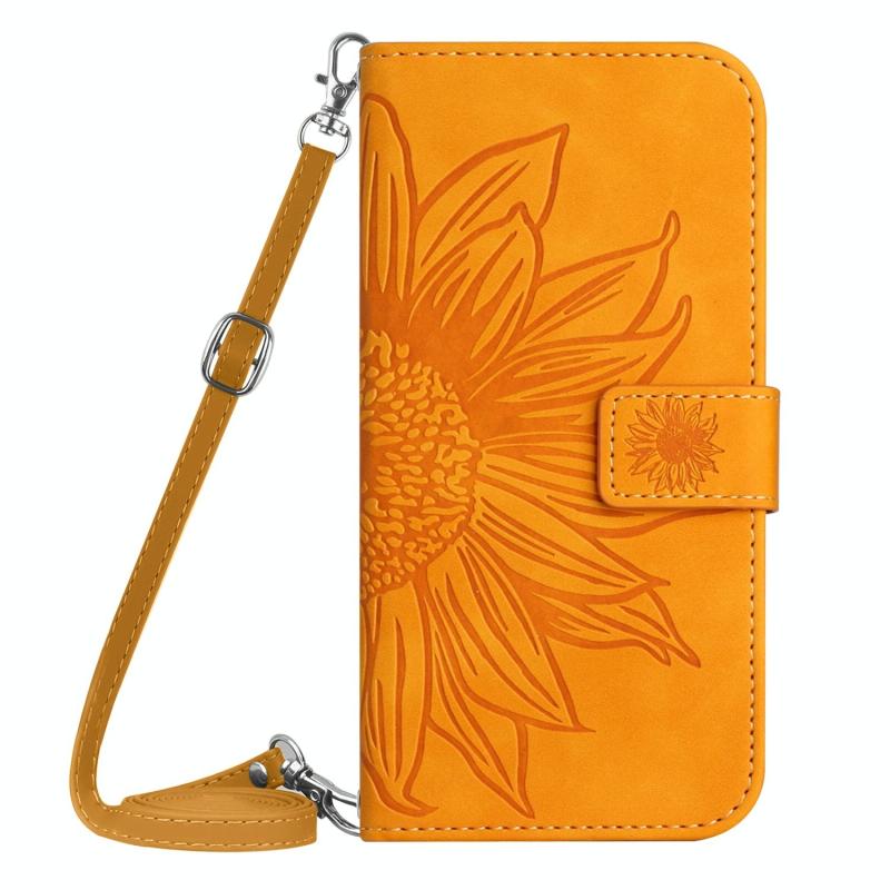 Θήκη τηλεφώνου από δέρμα με ανάγλυφο ηλιοτρόπιο και λουρί για Honor 80 SE HT04, με αίσθηση αφής (Κίτρινο)