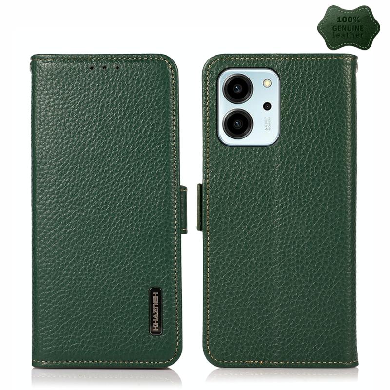 Θήκη κινητού τηλεφώνου με μαγνητική πλευρά και γνήσιο δέρμα Litchi για Honor 80 SE KHAZNEH με προστασία RFID (Καφέ)