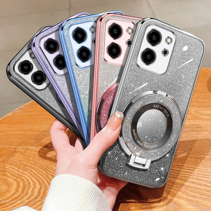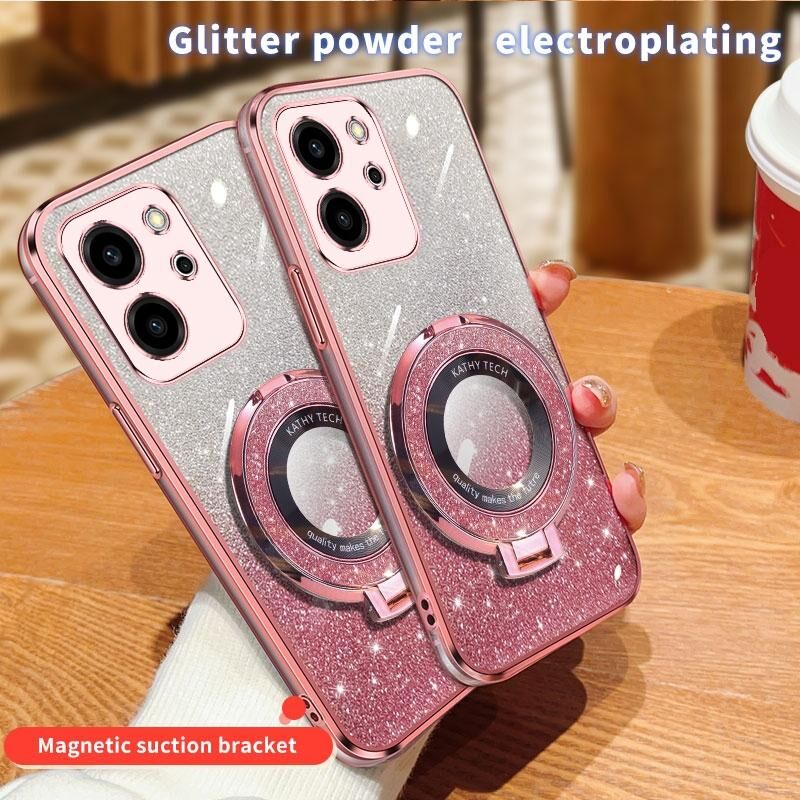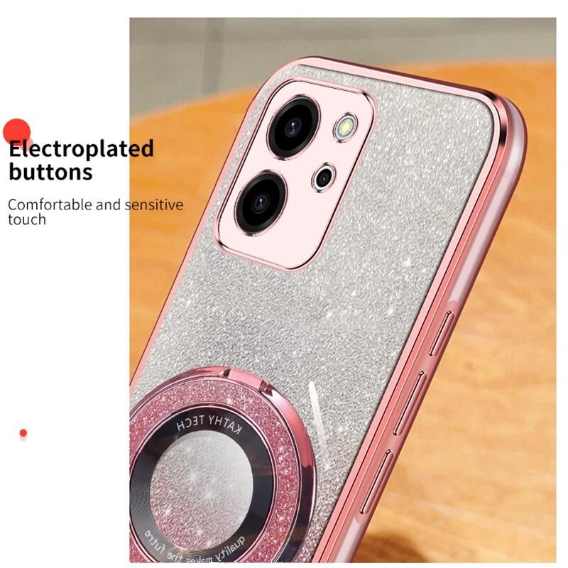 Για Honor 80 SE επιμεταλλωμένο διαβαθμισμένη Glitter στρογγυλή κάτοχος TPU τηλέφωνο υπόθεση (ροζ)