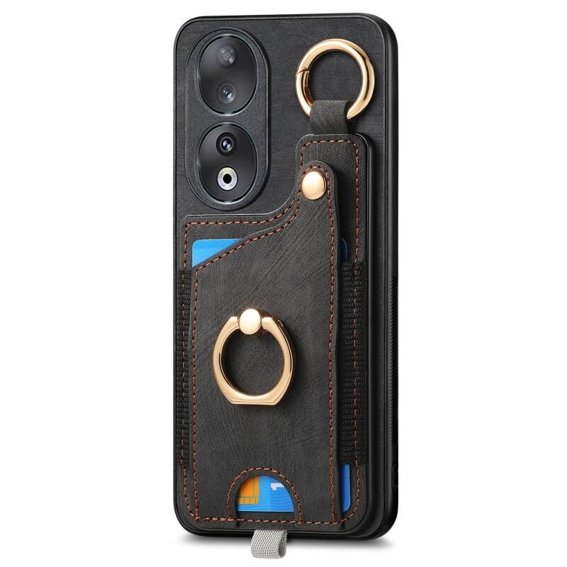 Για την τιμή 80 SE Retro δέρμα-feel Ring Card τσάντα υπόθεση τηλεφώνου με Hang Loop (Μαύρο)