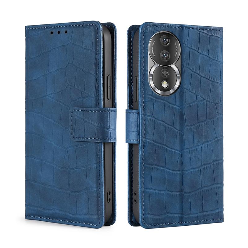 For Honor 80 Skin Feel Crocodile Magnetic Clasp Leather Phone Case(Blue)