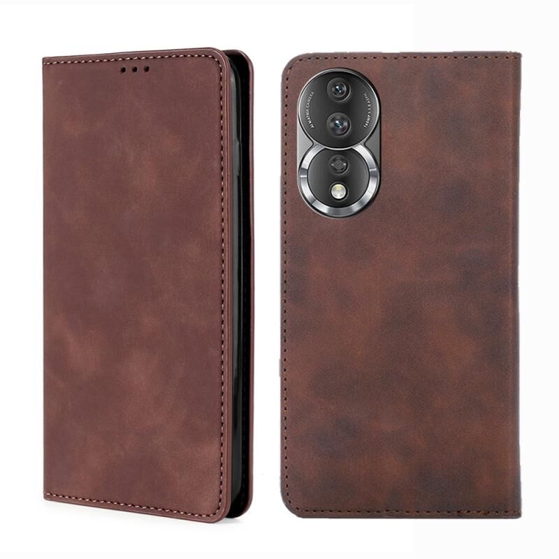 Για Honor 80 Skin Feel μαγνητική οριζόντια Flip δέρμα τηλέφωνο υπόθεση (Σκούρο καφέ)