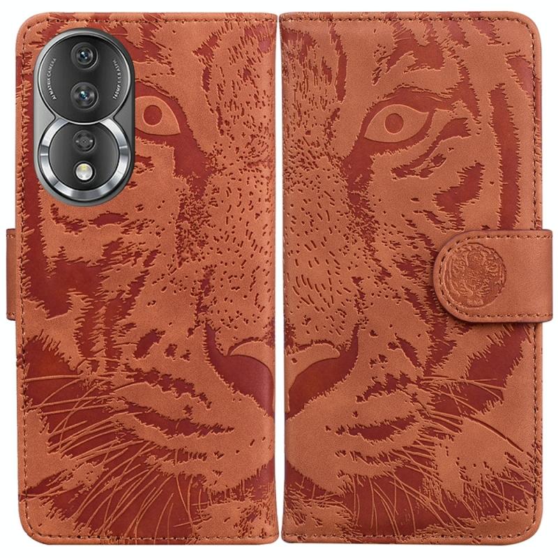 Θήκη τηλεφώνου από δέρμα με ανάγλυφο μοτίβο τίγρης για Honor 80 (Καφέ)