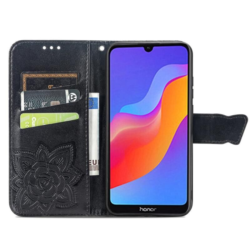 Θήκη τηλεφώνου από δέρμα με ανάγλυφο σχέδιο πεταλούδας και λουλουδιών για Honor 8A (Μαύρο)