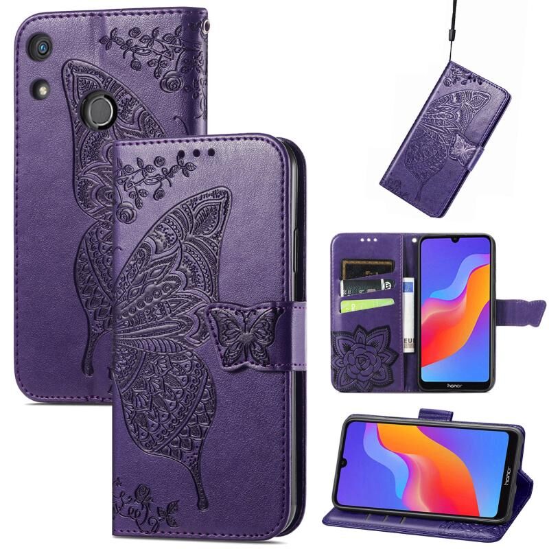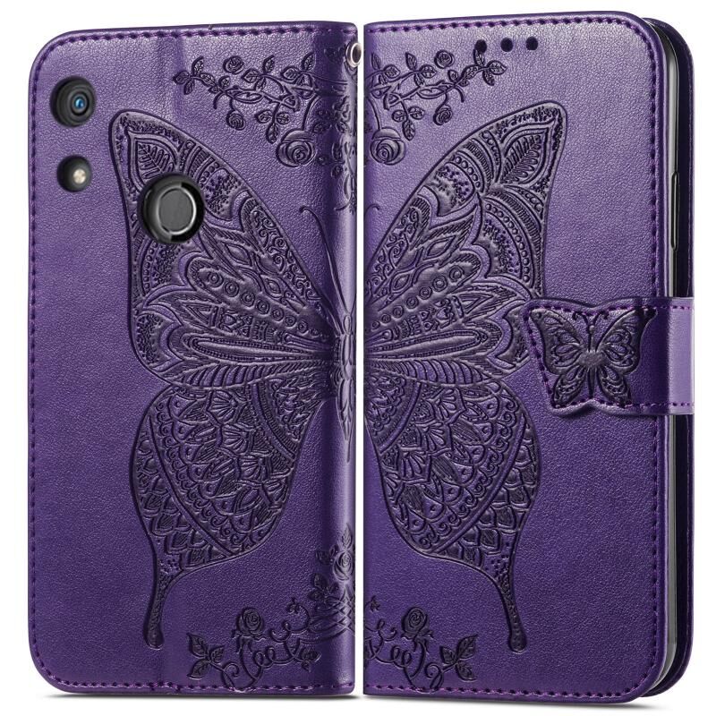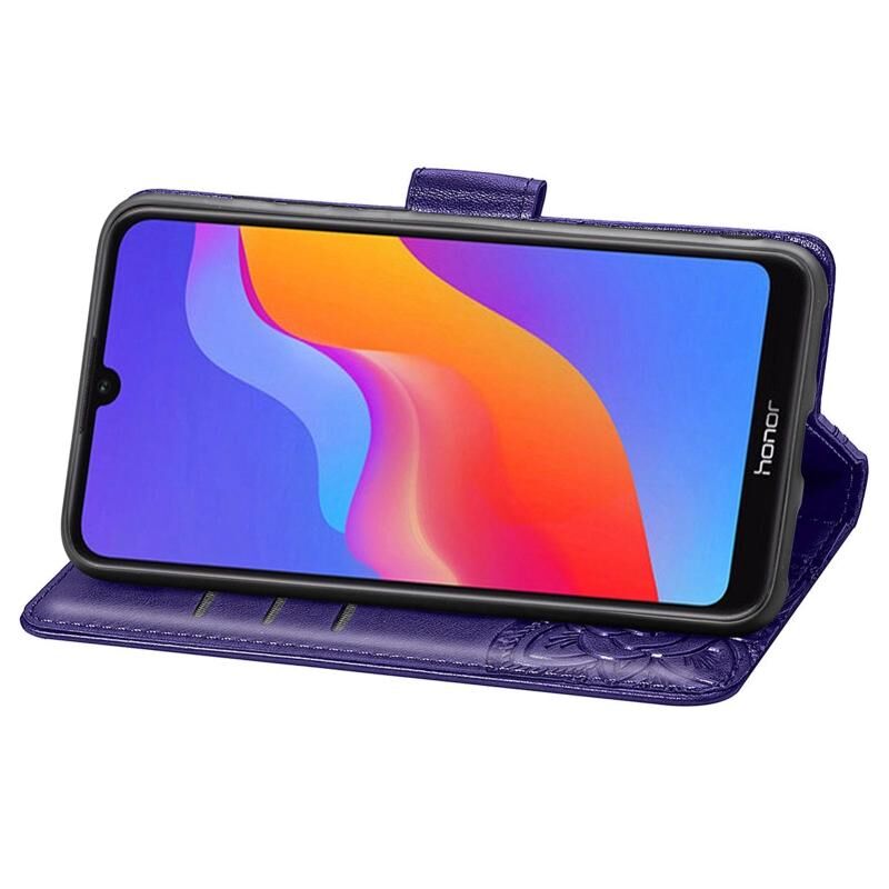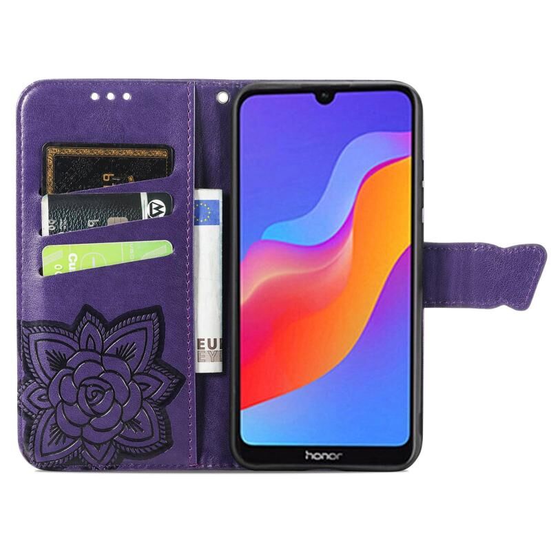 Θήκη τηλεφώνου από δέρμα με ανάγλυφο σχέδιο πεταλούδας και λουλουδιών για Honor 8A (Μαύρο)