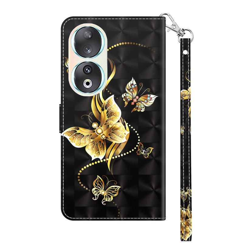 For Honor 90 3D Painted Leather Phone Case(Golden Swallow Butterfly)