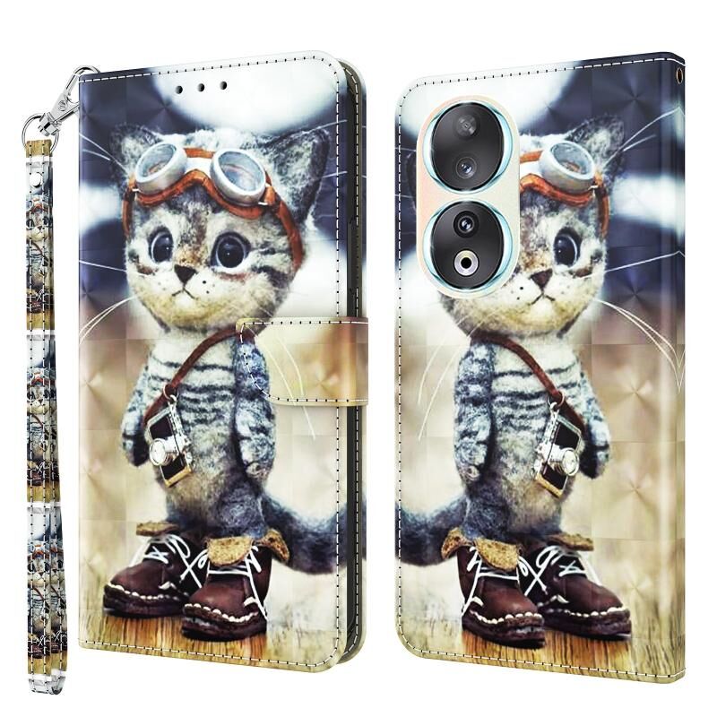 Θήκη τηλεφώνου από δέρμα με τρισδιάστατη βαφή για Honor 90 (Σκανταλιάρικο Γατάκι)