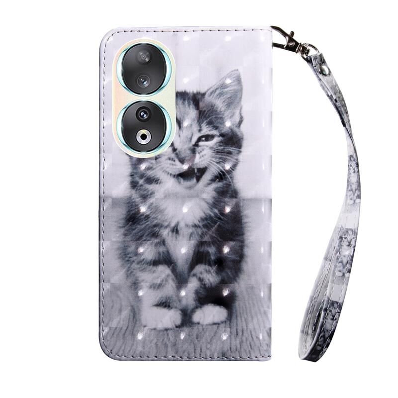 Θήκη τηλεφώνου από δέρμα με τρισδιάστατη βαφή για Honor 90 (Γάτα με χαμόγελο)