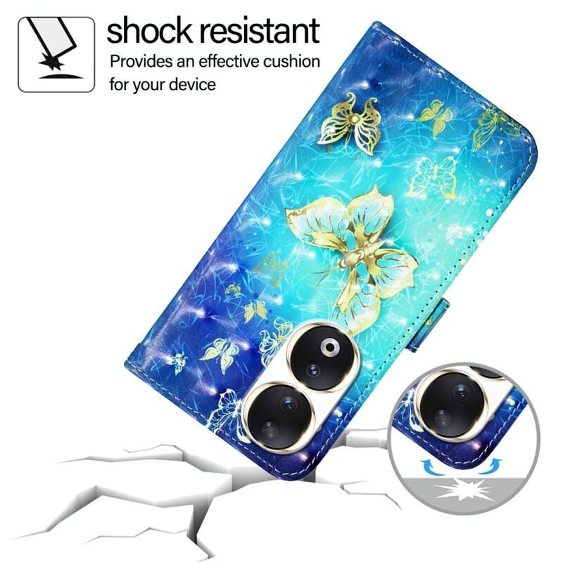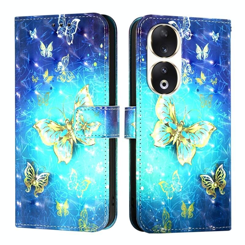 Θήκη τηλεφώνου από δέρμα με τρισδιάστατη ζωγραφική και οριζόντια αναδίπλωση για Honor 90 (Χρυσή Πεταλούδα)