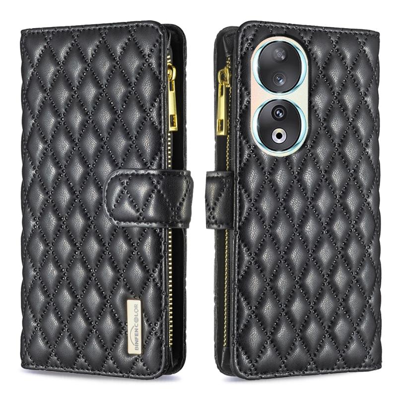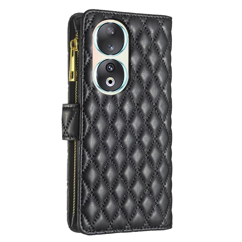 For Honor 90 5G Diamond Lattice Zipper Wallet Leather Flip Phone Case(Black)