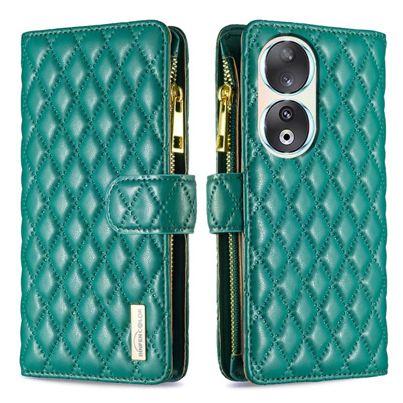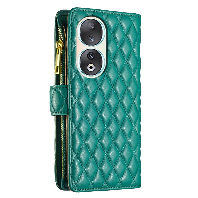 For Honor 90 5G Diamond Lattice Zipper Wallet Leather Flip Phone Case(Green)